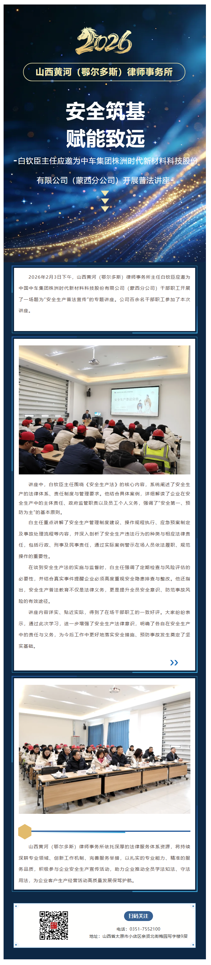 新闻动态丨安全筑基 赋能致远——鄂尔多斯分所主任白钦臣应邀为中车集团株洲时代新材料科技股份有限公司(蒙西分公司)开展普法讲座