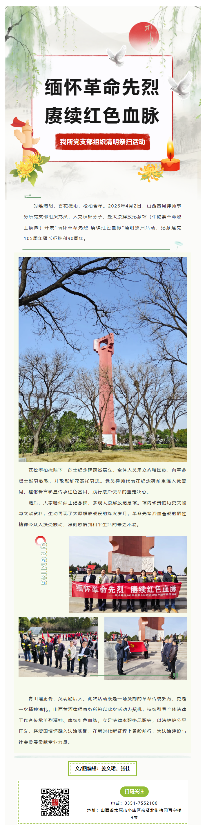 新闻动态丨缅怀革命先烈 赓续红色血脉——山西黄河律师事务所党支部清明祭扫活动纪实